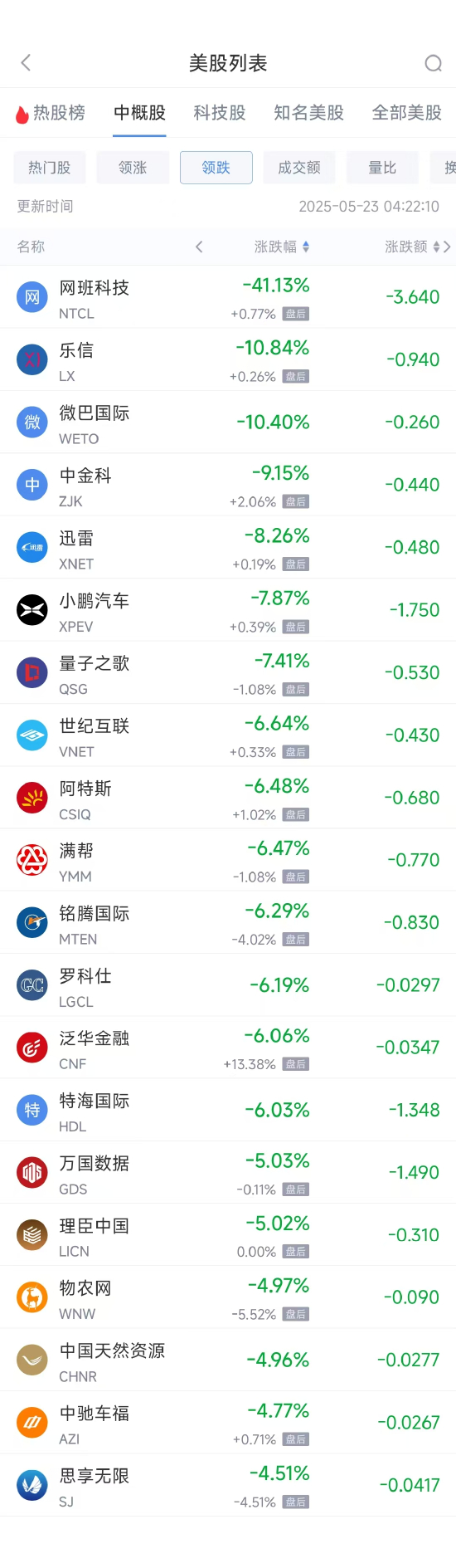 (截图来自新浪财经APP 行情-美股-中概股热门板块)下载新浪财经APP