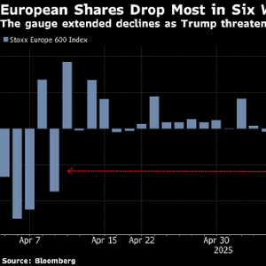自特朗普上个月宣布暂停大部分关税90天以来,欧洲股市持续反弹,贸易休战进一步提振了市场情绪。但在特朗普的最新声明后,斯托克欧洲600指数本周下跌1%。