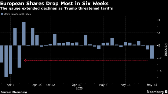 受制于美国总统特朗普对欧盟的最新关税威胁,欧洲股市下跌。