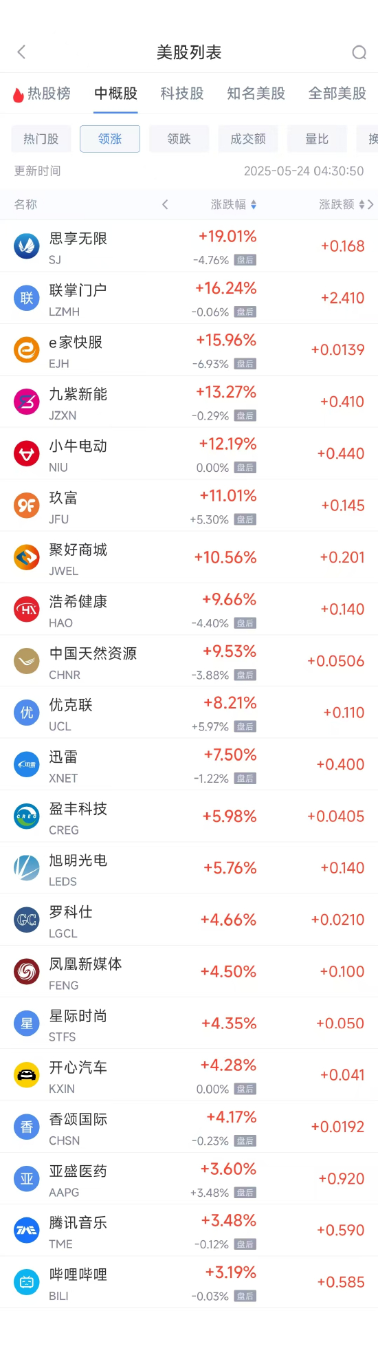 领涨中概股列表: