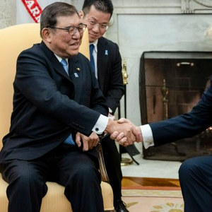 美国总统特朗普和日本首相石破茂2月份在椭圆形办公室。