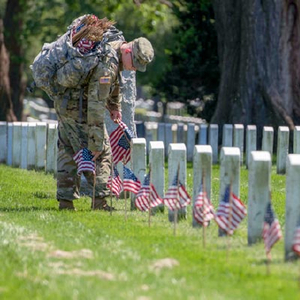 因此,1868年,5月30日这一天被正式批准为向为保卫祖国而英勇牺牲的士兵们敬献鲜花的日子。每逢阵亡将士纪念日,美国现役军人和老战士便排成长长的队伍前往墓地,鸣枪向阵亡将士致意,吹响军中熄灯号让死难将士安息。