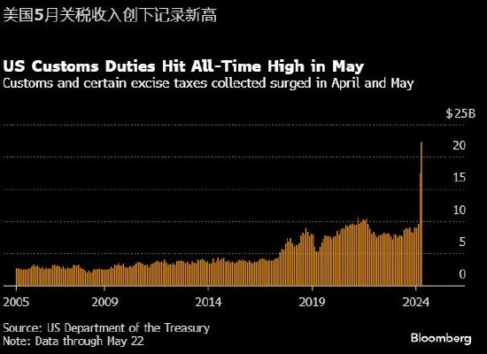 根据美国财政部上周五发布的数据,5月迄今为止的关税收入已创下月度记录新高,至少达到223亿美元。