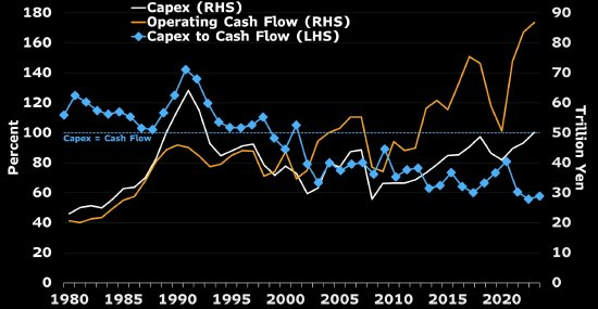 此外,在日本漫长的滞胀过程中发展起来的日本企业在财务方面已变得更趋保守,投资更依赖自有现金流而非长期借贷。因此企业资本支出对利率上升没有那么敏感。