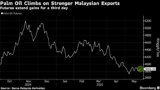 棕榈油价格创下逾一周来最大涨幅,得益于第二大种植国马来西亚的出口走强。