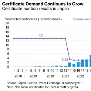 非化石燃料证书(NFC)是日本交易中最常见的可再生能源证书,随着越来越多的电力零售商和消费者利用NFC来履行其清洁能源承诺,对这种证书的需求正在增长。