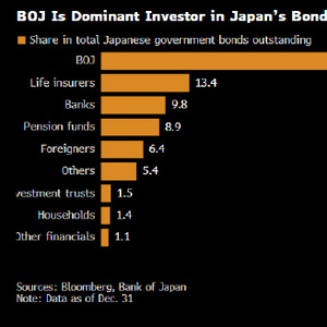日本央行长期以来一直是日本政府债券的最大持有者。自1990年代以来,日本一直处于通货紧缩周期,也被称为“失去的十年”,直到最近才有所改观。购债是日本央行刺激经济策略的一部分,因为这可以使政府发行更多债券,从而增加支出。