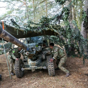 3 月 12 日,在德国霍恩费尔斯的训练区,英国军队士兵在 “盟军精神 25” 美国和北约组织训练演习中操作防空炮。