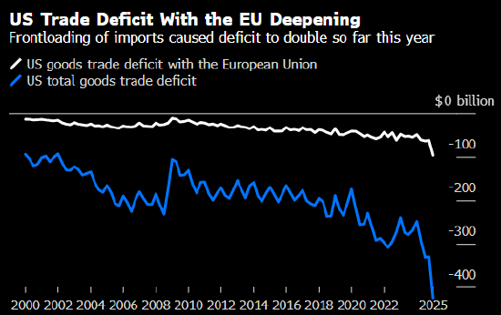 欧盟试图在7月9日特朗普威胁对几乎所有欧盟进口商品征收50%关税的最后期限前加快与美国的谈判。特朗普指责欧盟在贸易上不公平,呼吁欧盟减少商品贸易顺差并降低关税及非关税壁垒,如增值税。