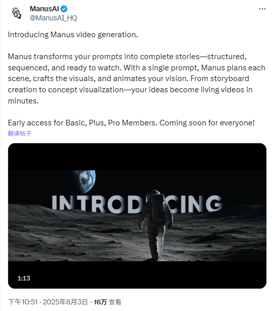 AI初创公司Manus发布文本转视频功能 挑战OpenAI等竞争对手
