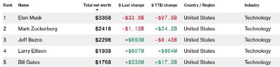 彭博亿万富翁指数显示,马斯克的身价一夜之间缩水了339亿美元,至3350亿美元。