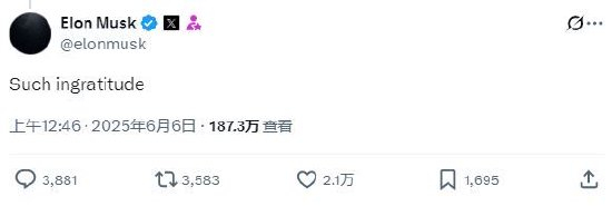 而马斯克则通过社交平台迅速回怼称,这份法案从未给他看过。他还转发了特朗普的两则旧帖,赞扬其十多年前对债务上限和财政赤字的态度,并表示他之所以反对“美丽大法案”并非因电动汽车“强制令”被砍,而是因为这份法案中“充斥着恶心的政治分肥”。