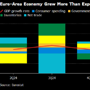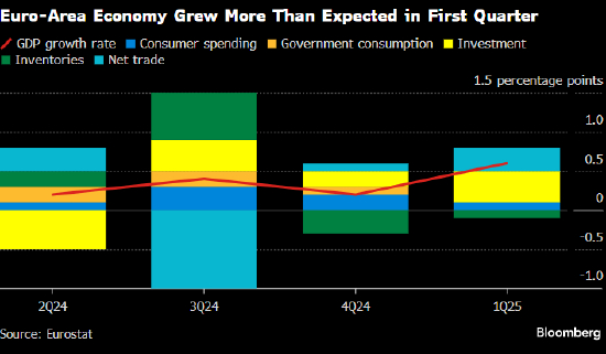 欧元区经济在2025年初的增长速度达到先前估算的两倍,包括爱尔兰和德国在内的国家出口激增,以应对预期中的美国关税措施。