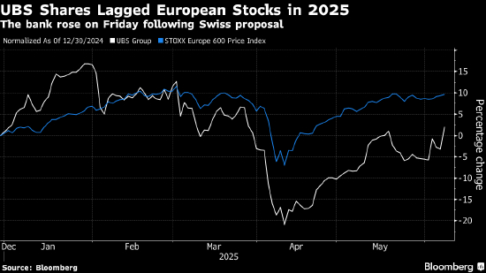 截至周四收盘,瑞银股价在2025年下跌了3.1%,表现逊于欧洲股市和银行股