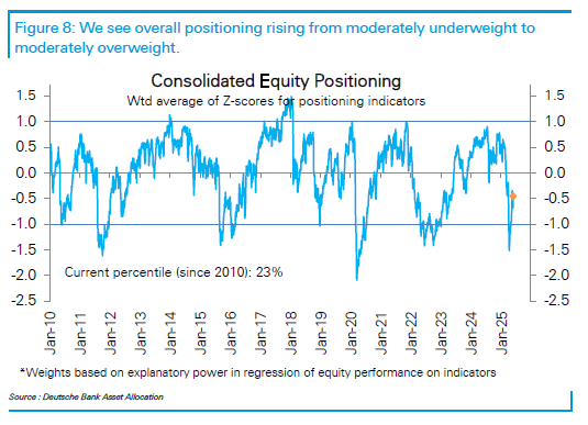 虽然市场已从4月受关税影响的下跌中强势反弹,但大型基金经理的持仓仍然明显偏低。 根据德意志银行的统计,自2010年以来,这些大型基金经理的整体股票仓位仅有23%的时间比目前更低。