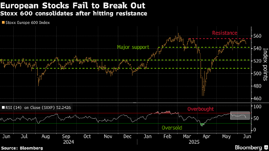 由于正在进行的贸易谈判几乎没有取得实质性进展的迹象,欧股的反弹在6月陷入停滞。在美国政府加紧与贸易伙伴争取达成关税协议之际,美国商务部长霍华德·卢特尼克表示,欧盟可能会是最后达成协议的经济体之一。