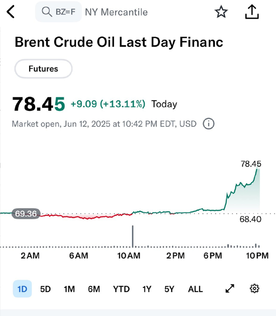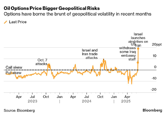 对于整个今年都受到贸易紧张局势冲击的全球经济而言,能源价格的下降是为数不多的积极因素之一。如果以色列对伊朗目标发动空袭后油价的上涨趋势得以持续,那么这一有利因素将会转变为又一个不利因素。袭击事件发生后,油价上涨了约 13%。摩根大通此前曾警告称,在通过霍尔木兹海峡的石油运输被封锁或中东地区出现更大规模冲突的“严重情况”下,油价可能会飙升至每桶 130 美元。