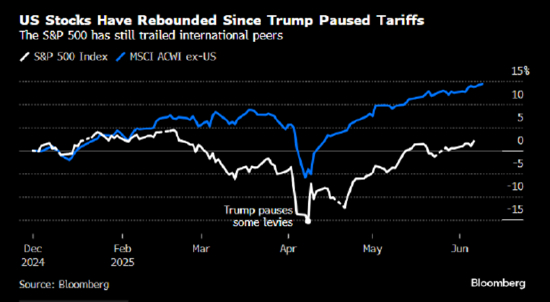 美国总统唐纳德•特朗普暂停实施部分高关税后,标普500指数反弹。近期显示劳动力市场健康的数据也推动了这轮涨势,使该指数较2月创下的纪录高点仅低约2%。不过,受贸易相关不确定性影响,该基准指数今年仍落后于国际其他指数。
