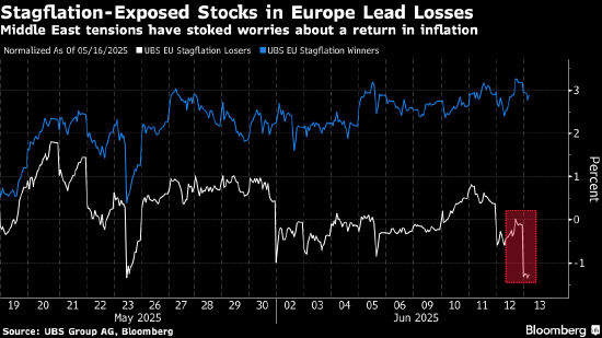 受滞胀风险影响较大的股票领跌。油价飙升引发对增长受损以及通胀飙升的担忧。瑞银所谓的“滞胀输家”(stagflation losers)一篮子股票指数下跌1.3%,跑输大盘。该指数追踪法国酒店运营商Accor SA、电信企业Italia SpA、ArcelorMittal SA以及法国大型企业Bouygues SA等公司。