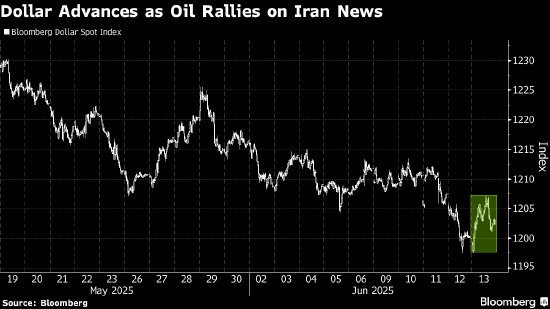 随着油价飙升,美元上涨。此前以色列对伊朗发动空袭,引发对该地区爆发更大范围冲突的担忧。受原油价格上涨提振,挪威克朗和加元表现强于其他货币。