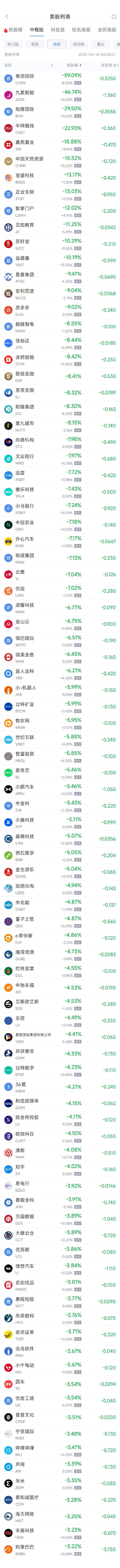 领跌中概股列表: