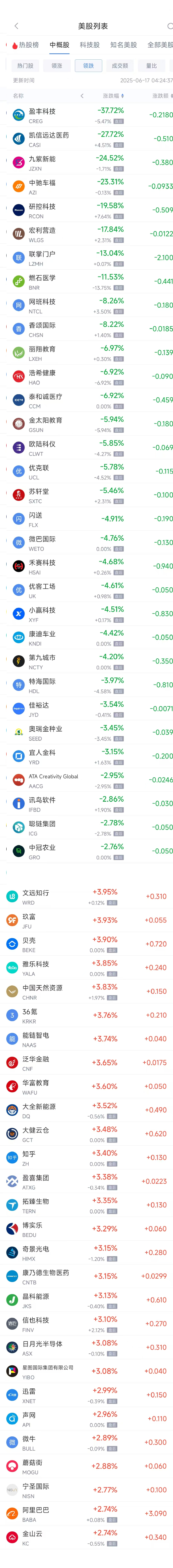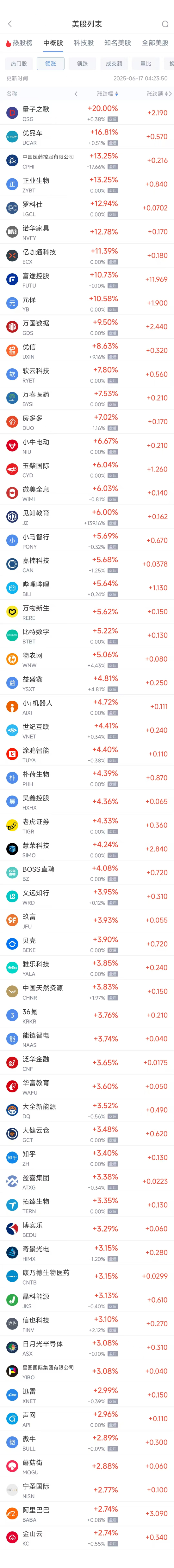 (截图来自新浪财经APP 行情-美股-中概股热门板块)下载新浪财经APP