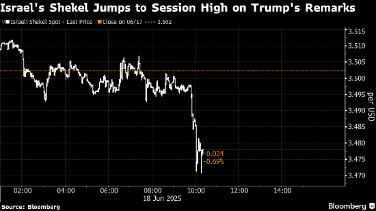 尽管特朗普拒绝透露美国对伊朗的计划,但他在白宫发表的言论提振了外界对以色列与伊朗之间战争将会降温的预期,推动谢克尔汇率一度上涨0.9%,表现优于所有新兴市场货币。