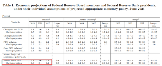 2025年底的联邦基金利率为3.9%,持平3月预期。