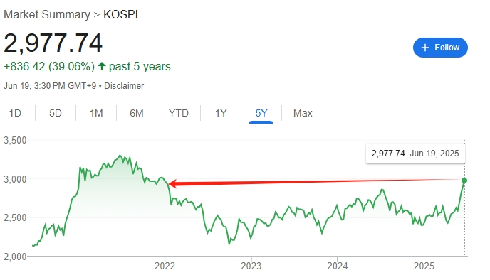 尽管中东紧张局势加剧导致市场疲软,但由于科技股延续涨势,韩国股市周四创下三年多来的最高收盘价。韩国综合股价指数(KOSPI) 收盘上涨5.55点,涨幅0.19%,报2977.74点,创2022年1月4日以来最高收盘水平。受政策乐观情绪影响,科技股延续涨势,大型入口网站Naver上涨3.49%,移动通讯应用程序业者Kakao上涨9.42%。
