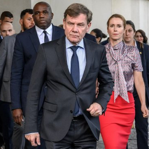6月20日,德国外交部长Johann Wadephul(中)、英国外交大臣David Lammy(左)和欧盟高级代表兼外交与安全政策副主席Kaja Kallas(右)在与伊朗外交部长就德黑兰核计划举行会谈后离开。