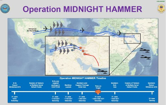 行动持续37个小时,动用了总计125架飞机、14枚巨型钻地炸弹并由潜艇发射24枚“战斧”导弹等。