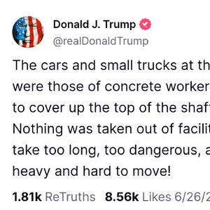 美国总统特朗普在Truth Social上发文称,“没有东西被带出设施”。此言似乎是在提及伊朗。