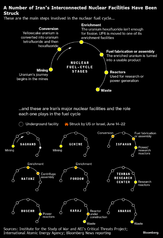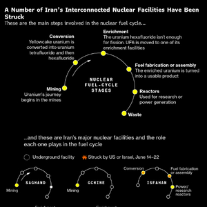 根据IAEA总干事拉斐尔·马里亚诺·格罗西的说法,视察人员最后一次看到伊朗的高浓铀是在6月13日以色列空袭行动开始的几天前。空袭导致核查工作暂停。当时,浓缩铀库存位于伊斯法罕核技术与研究中心,该中心是一个化学处理枢纽,将铀矿石转化为可供浓缩的原料。伊斯法罕设施位于伊朗中部,遭到以色列的袭击,随后美国也对其实施了打击。