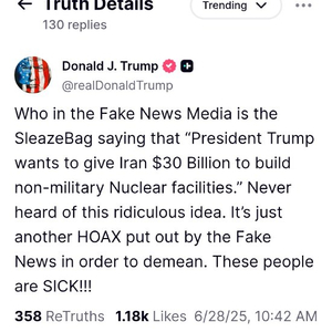特朗普表示:“哪个混蛋捏造出‘特朗普想给伊朗300亿美元建设非军事核设施’这种事?从没听说如此荒谬的想法,这只是假新闻媒体为了贬低我编造的骗局。这些人简直有病!!!”