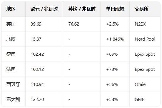 欧洲电力拍卖:北欧日前电价飙升 1846%