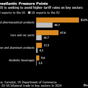 欧盟正在推动美国承诺对制药、酒类、半导体和商用飞机等关键行业实施较普遍10%关税更低的税率。