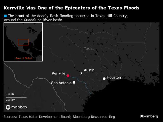 周五突发洪水时,“神秘营” 约有 750 名儿童,该营地位于圣安东尼奥西北约 85 英里(137 公里)处。得克萨斯州丘陵地区横跨该州中部 20 多个县的全部或部分区域,东部边缘的奥斯汀和圣安东尼奥发展迅速,正推动该地区从牧场向郊区转变。