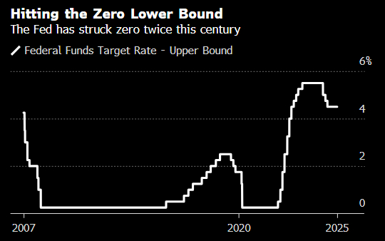 美联储最初在2008年12月全球金融危机期间将利率降至0%至0.25%的区间以刺激经济,并在该水平维持了七年。2020年新冠疫情爆发后,利率再次降至零并保持了两年。