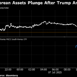 特朗普宣布对韩国商品征收25%的关税后,该国资产跌至盘中低点,美国与最重要贸易伙伴之一的紧张关系升温。