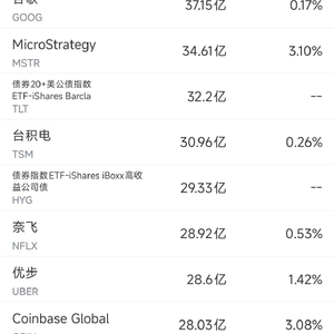 第15名Strategy收跌2.06%,成交34.61亿美元。该公司周一宣布启动42亿美元“按市价发行”计划,将发售其10%永久STRD优先股。该公司表示将视市场状况和交易量择机分批出售股份。