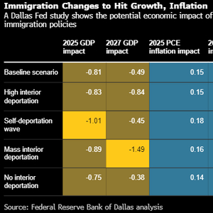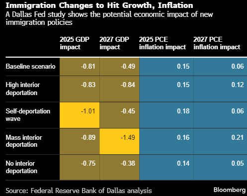 达拉斯联邦储备银行的一项研究发现,特朗普政府对移民的限制及重拳驱逐行动将导致今年美国经济增速下降近一整个百分点。