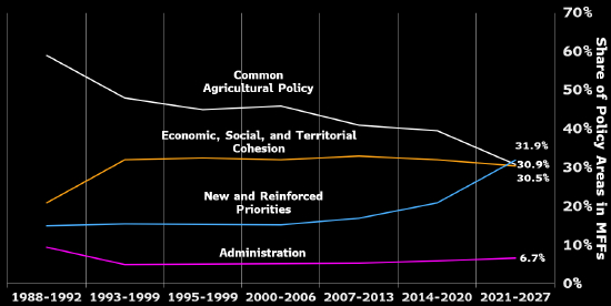 多重优先事项相互拉扯,欧盟预算面临难题来源:欧盟委员会、彭博经济研究