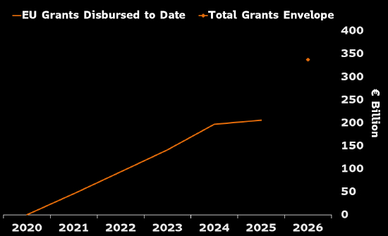 欧盟委员会需要多少钱来填上这个窟窿尚不清楚,因为这最终取决于债务偿还情况以及各成员国政府是否用掉了其能支取的全部拨款。迄今为止,已经拨付的资金约2,050亿欧元,这意味着在2026年最后期限前支取全部拨款的难度在增加。
