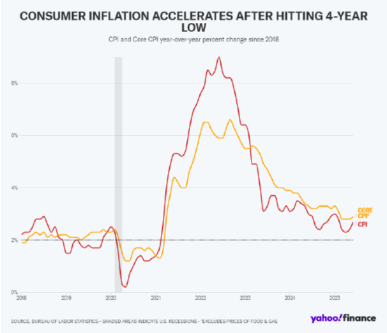 周二发布的新政府数据显示,6 月通胀小幅攀升,与此同时,投资者持续留意特朗普总统的关税政策可能开始传导至消费者的迹象。