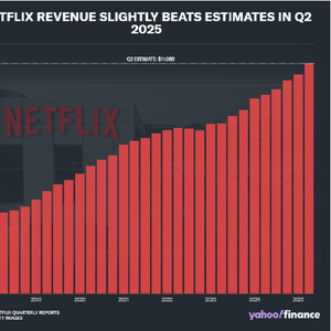 对于 2025 年全年,网飞目前预计营收在 448 亿至 452 亿美元之间,高于此前预期的 435 亿至 445 亿美元。