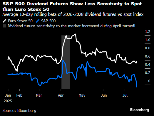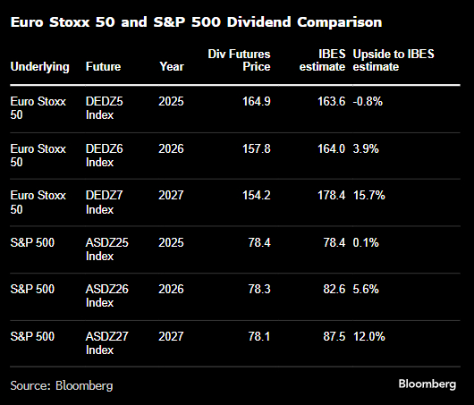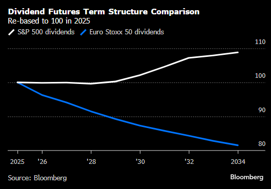 这类合约押注于 Euro Stoxx 50 指数等 gauge 中企业的累计股息支付,在欧洲长期以来一直很受欢迎,是投机企业股息和对冲长期负债的工具。如今,美国正在迎头赶上。
