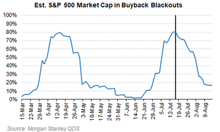企业自购同样被顶级资本公认为今年美股的亮点。Citadel分析指出,7-8月历来是企业回购的“黄金期”。今年8月起,标普500全体成份公司绝大部分将解禁,可以重启巨额回购操作,这将在美股估值高企时提供坚实的被动需求。