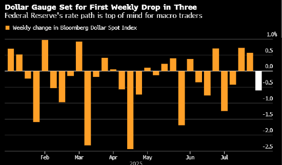 彭博美元指数周五上涨,但本周料录得三周来首次下跌。欧元期权市场前景依然看涨,交易员继续下调对欧洲央行年内最后一次降息的押注。