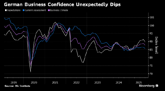 德国企业信心意外下跌,凸显出总理默茨恢复欧洲最大经济体增长计划的脆弱性。