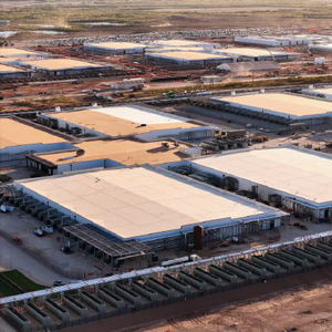 美国得克萨斯州阿比林市,一片半干旱荒漠地带中矗立着大片建筑群的航拍景象 —— 这里是美国规模最大的人工智能数据中心项目,OpenAI 旗下的 “星门” 数据中心。